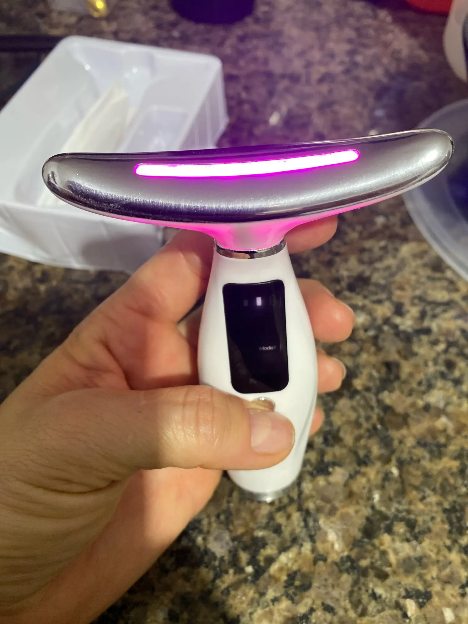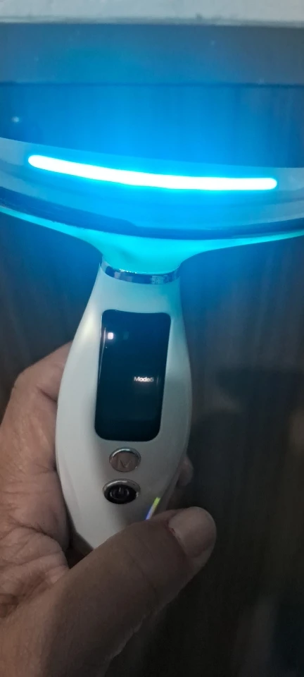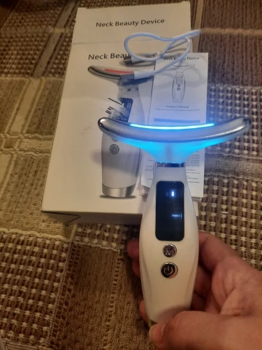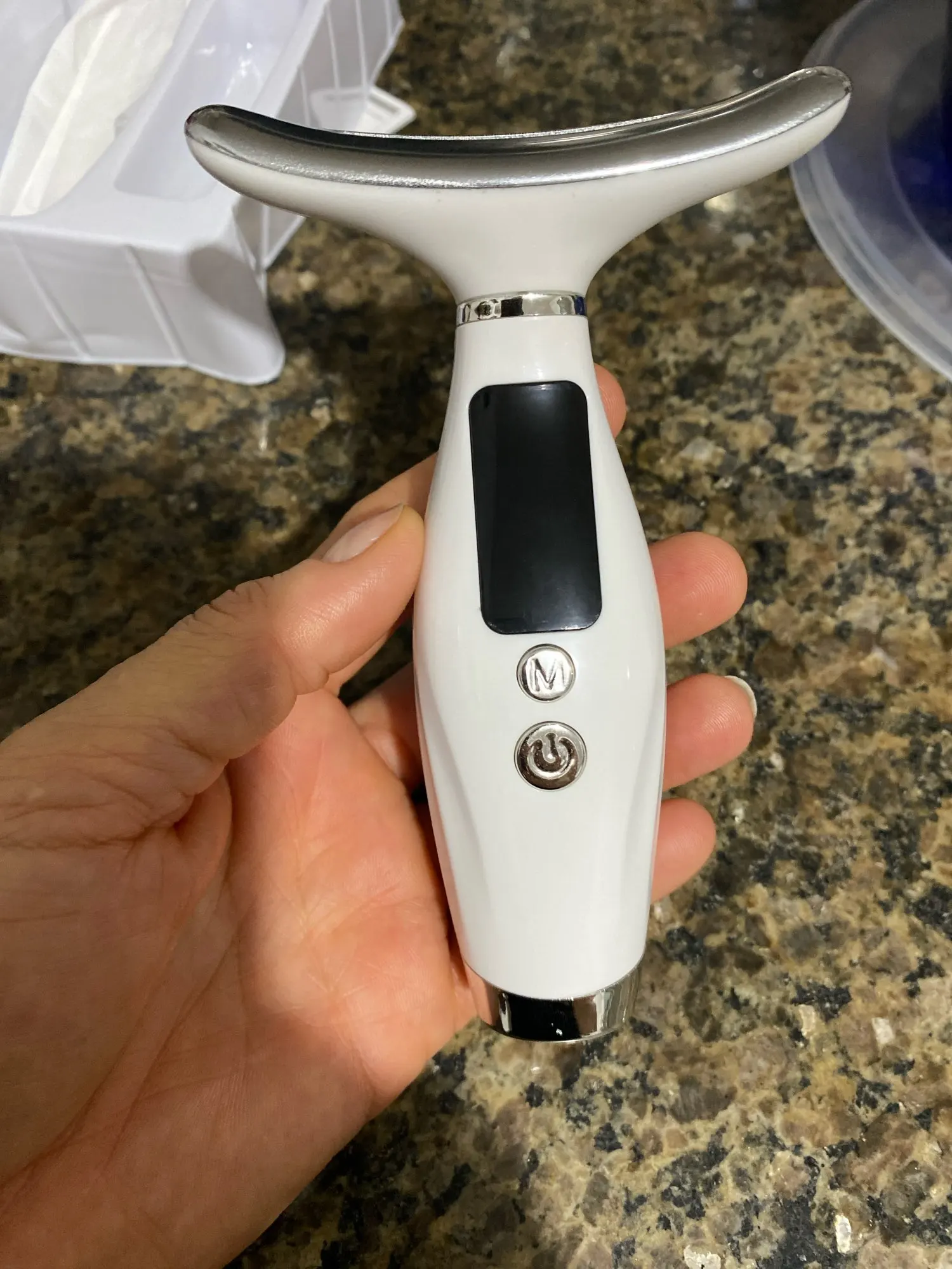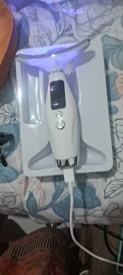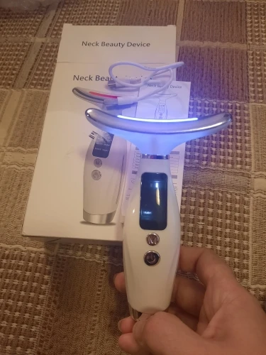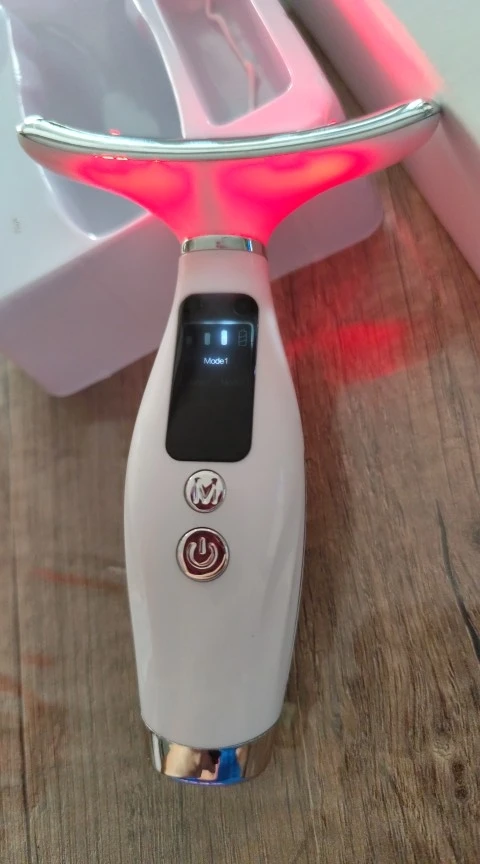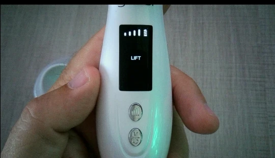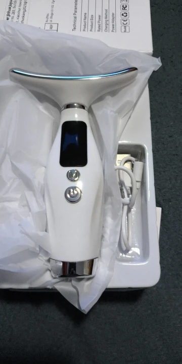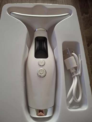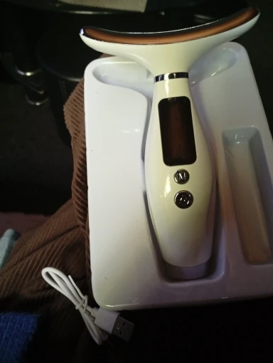 It has surprised me a lot; it has improved my expression lines. One must be consistent... The device is basically a facial massager, to be used day and night following the movements recommended in the guide. At night, for example, it is very good for relaxing after a tense day, and it is the functionality that is seen in the short term; for the rest, it must be applied daily, of course. Then it has a heat option, which will be very useful in winter. These two are the main functions.